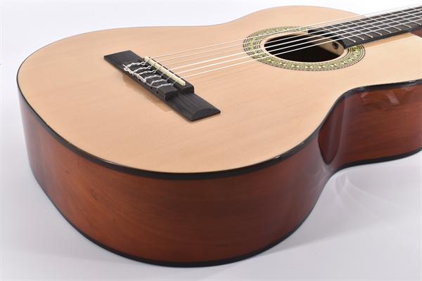 Klassische Konzertgitarre aus ausgesuchten Hölzern gefertigt, ideales Einsteigerinstrument. Hochwertige Fichtendecke für optimalen Klang.