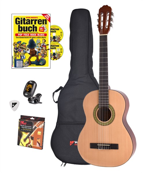 Das Rundum-sorglos-Paket für Kinder ab 10 Jahren sowie für Erwachsene, die Gitarre lernen möchten: Eine solide Gitarre mit einem sehr guten Preis-Leistungs-Verhältnis in Kombination mit dem millionenfach verkauften Erfolgstitel „Peter Bursch’s Gitarrenbuch“.