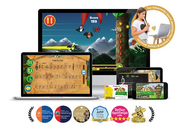 Mit Flute Master lernst du das Blockflötenspiel spielend leicht und mit jeder Menge Spaß. Du spielst mit einer echten Blockflöte – die App erkennt deine Töne über das eingebaute Mikrofon deines Computers, Laptops, Tablets oder Smartphones. Flute Master beinhaltet unter anderem 30 eigens für die Blockflöte und den Unterricht komponierte Lieder mit einer Geschichte, liebevollen Animationen und Charakteren. Aber du lernst mit Flute Master nicht nur das Blockflötenspiel, sondern auch Notenlesen und Rhythmusgefühl.
