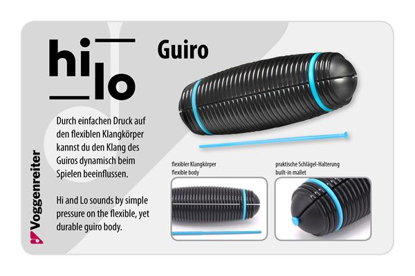 Mit dem Hi-Lo Guiro hältst du ein ganzes Universum faszinierender Sounds in der Hand – was sich dank des für perfekten Grip entwickelten Klangkörpers auch noch hervorragend anfühlt. Durch einfachen Druck auf den flexiblen Klangkörper kannst du den Klang des Guiros dynamisch beim Spielen beeinflussen. Und mit dem genialen integrierten Halter hat die ewige Suche nach deinem Schlägel endlich ein Ende. Ob im Studio, auf der Bühne oder unterwegs – du wirst nie wieder einen anderen Giuro verwenden!