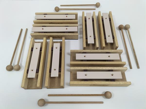 Sie bestehen aus einzelnen Klangplatten, eine für jeden Ton, wobei jede auf ihrem eigenen hölzernen Resonanzkörper klingt.