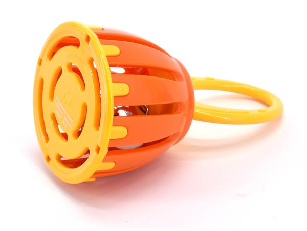 Hier wird Sicherheit groß geschrieben! Dieses „Glöckchen im Käfig“ erzeugt nicht nur einen sehr schönen Klang, sondern ist auch aus unbedenklichem Kunststoff gefertigt und dank patentierter Verschränkungstechnik schon für Babys ab drei Monaten geeignet.
