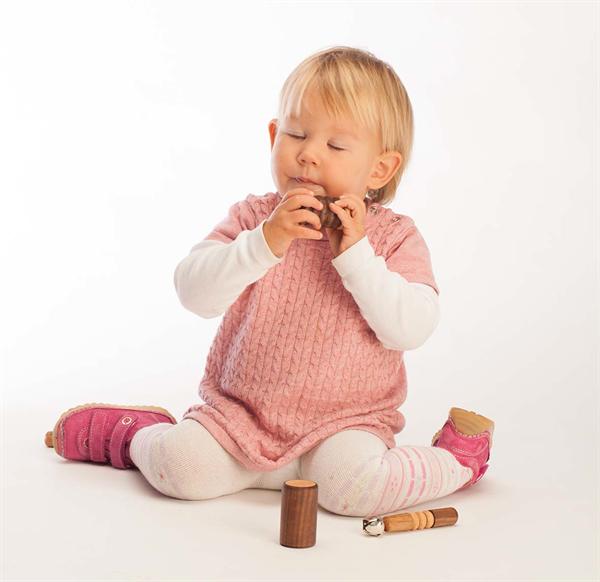 Aber auch an die anderen Sinne haben wir natürlich gedacht: Das tolle „Day and Night“-Design aus Buchenholz (hell) und Nussbaum (dunkel) ist eine richtige kleine Augenweide. Helles und dunkles Klangspielzeug klingt unterschiedlich – so passt in jede Hand ein anderer Sound!