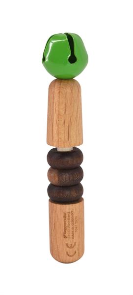 Mit seinen drei Schieberingen liegt der Glöckchen-Stab angenehm und sicher in der Hand. Die Ringe laden kleine Hände zum Erkunden, Tasten und Hin- und Herschieben ein und fördern so die feinmotorische Entwicklung und den Tastsinn. Der freundliche Klang des „Sticki“ zaubert ein Lächeln auf Kindergesichter und der Glöckchenkäfig ist mit unbedenklicher Farbe eingefärbt!