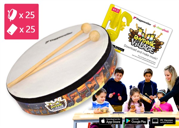 Produktinformationen "Trommel-Kiste "Rhythmic-Village" 2 (25 x App + 25 Handtrommeln)"