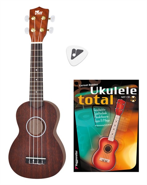 Mit diesem Ukulelen-Set kann jeder mit eingängigen Liedern für gute Stimmung sorgen. Die hochwertige Holz-Ukulele sowie die eigens auf dieses sympathische Instrument zugeschnittene Schule „Ukulele total“ inkl. CD bieten für einen schnellen und einfachen Einstieg genau das richtige Equipment!
