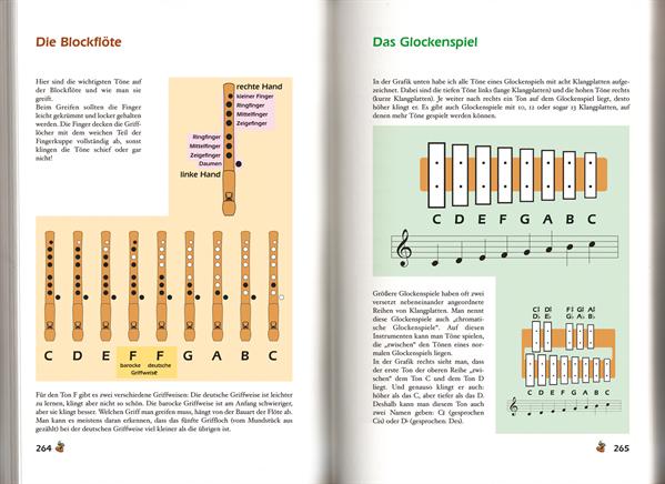 Im umfangreichen Anhang sind viele Informationen über grundlegende musikalische Sachverhalte, Spielhinweise für Gitarre, Klavier oder Keyboard, Grifftabellen für Blockflöte, Glockenspiel und Mundharmonika gesammelt.