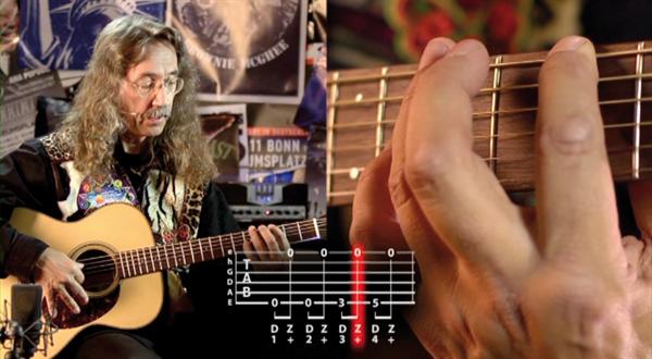 Peter Bursch zeigt dir die wichtigsten Spieltechniken und Geheimnisse der Bluesgitarre von Null an und so einfach wie möglich. Alle Beispiele, Songs und Übungen sind deshalb in Tabulatur-Schreibweise aufgeschrieben. Du musst also nicht Notenlesen können. Du lernst die typischen Blues-Akkorde, Blues-Anschlagstechniken, Turnarounds, die Blues-Tonleiter und deine ersten Blues-Soli. Auch die fantastische Bottleneck-Spielweise wird mit einem tollen Song ausführlich erklärt.